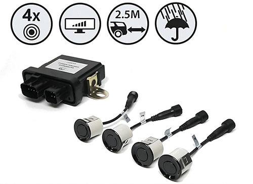 The BSSK4000 hard-wired Backup Sensor System is a new 6 sensor kit for buses, trucks and large vehicles. The heavy-duty kit is fully sealed, weather resistant, and consists of 4 bumper sensors, 2 roof sensors, a driver display, and an ECU. The ultrasonic sensor technology detects the distance between the vehicle and rear obstructions. The distance is indicated on the digital driver display and alerts the driver with escalating audible and visual alerts when the vehicle is too close to an object.