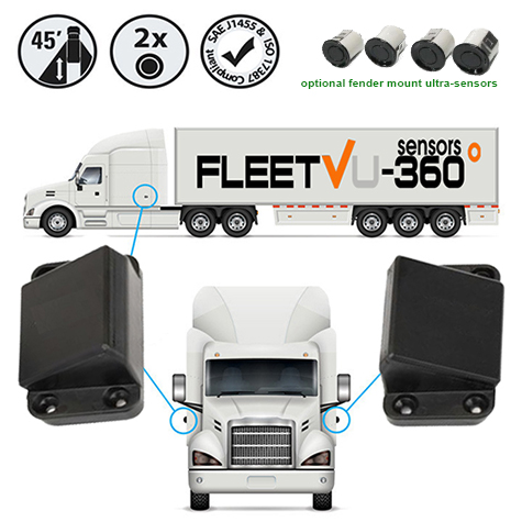 FleetVu’s 360 Advanced Sensor system includes an ultrasonic ECU, four front sensors, four left sensors, four right sensors, and four rear sensors, as well as an LED display. It detects targets using ultrasonic sensors and transmits the detected data to the ECU for processing. The display shows the color and audible sounds which depict corresponding sounds in reference to the distance of obstacles nearby. FleetVu 360° Advanced Sensors enhance driver performance and increases driver safety when navigating, reversing or driving. 360° FleetVu.pdf